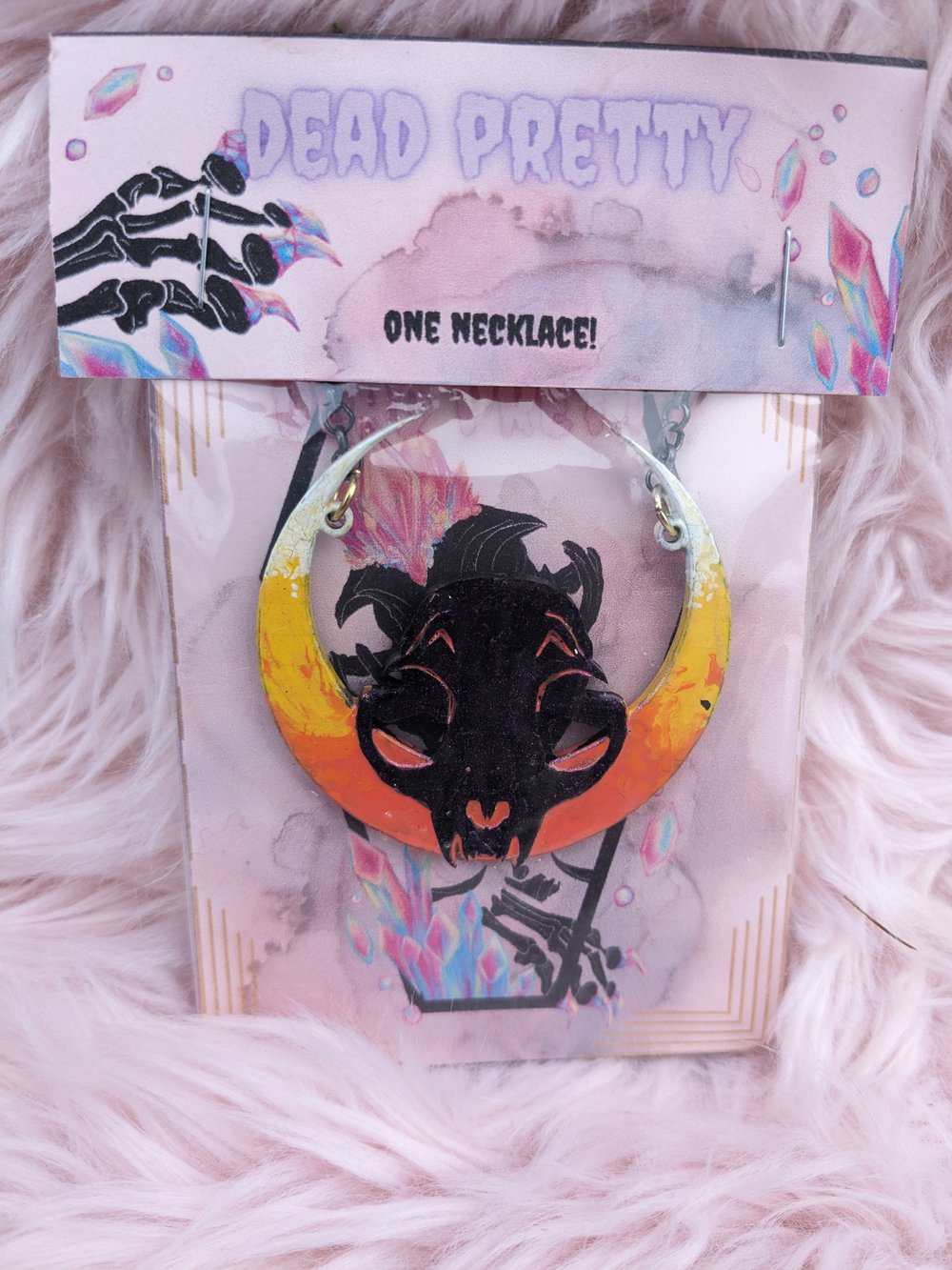 This necklace is 3d printed in resin, then hand painted and assembled.